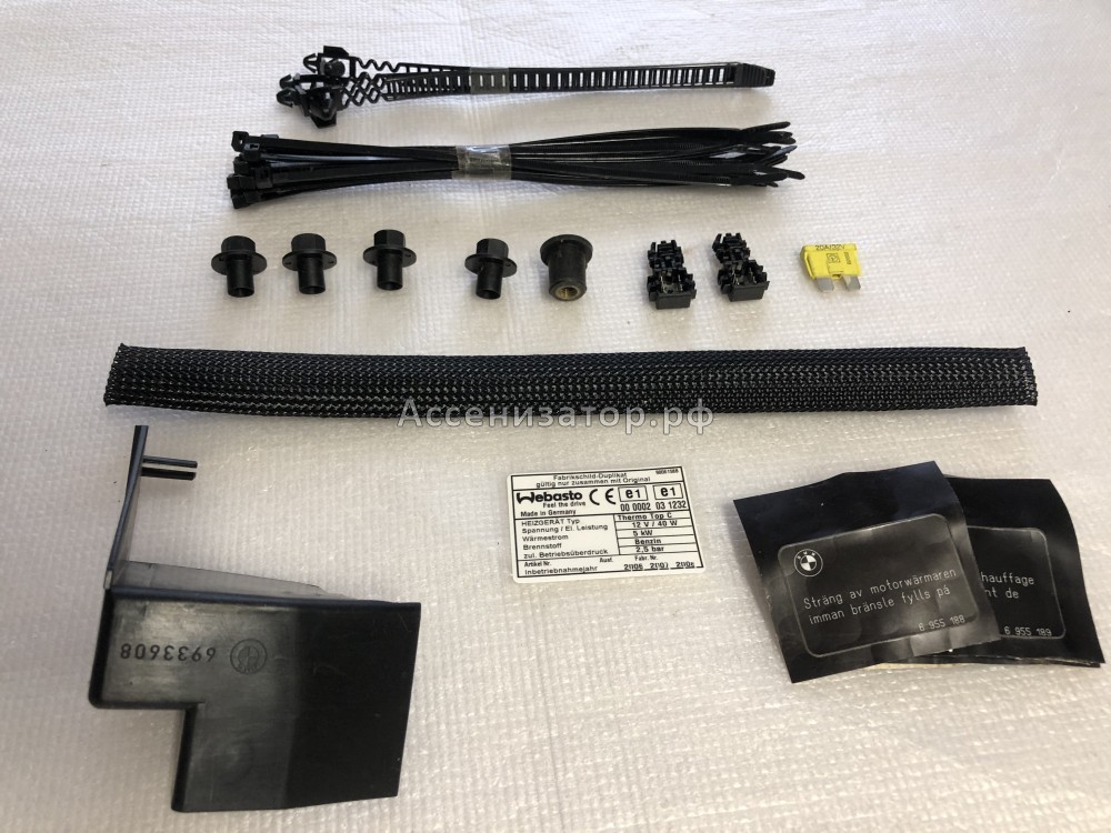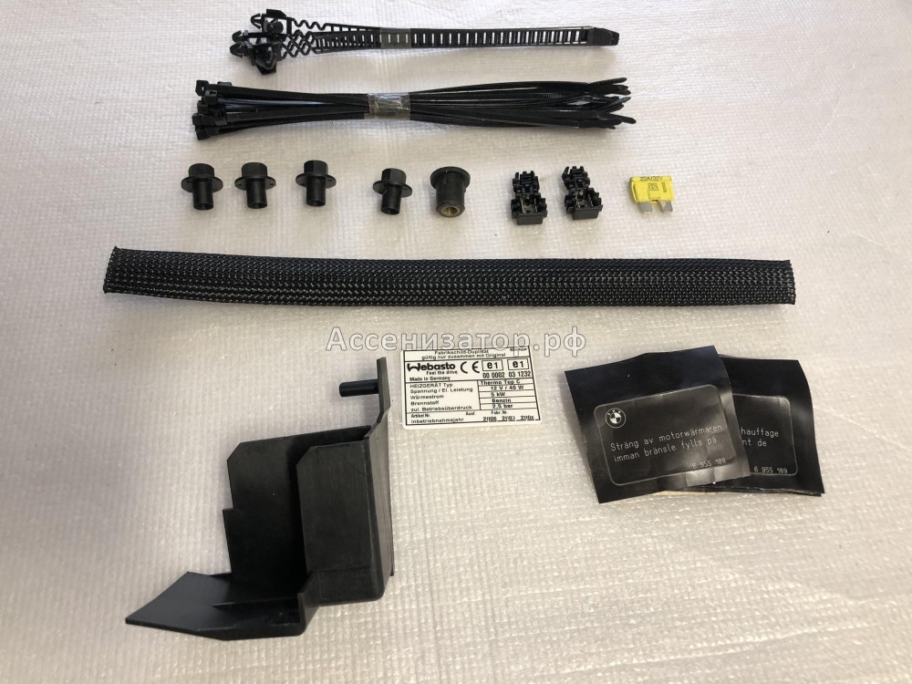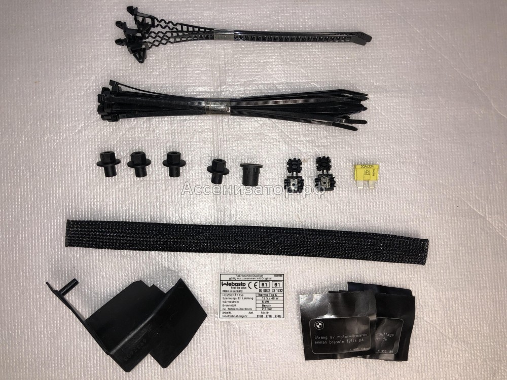 Комплект крепежа WEBASTO BMW E60 (втулки 5 шт, хомуты, разьемы 2 шт, крепеж, предохранитель) 64500396436